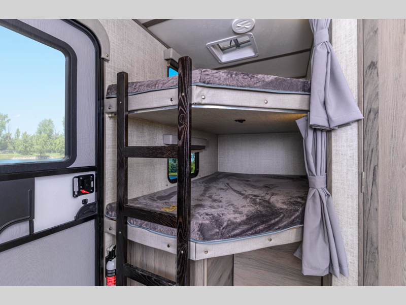 - Bunk Beds w/Poly Mattresses 46” x 73” in 246BH, 282BH; 28” x 74” & 38” x 74” in 284QB