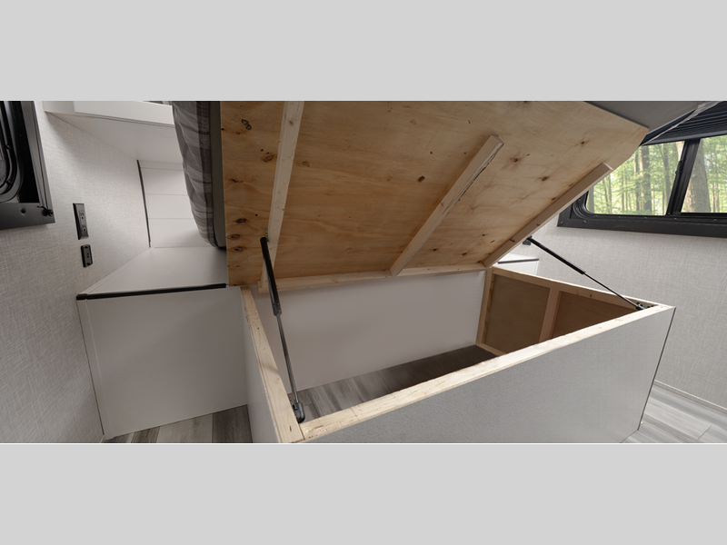 You'll find fresh interior décor and the modern technology that has been included will keep you running smoothly throughout your trips. The Magnum Truss roof system has been engineered to withstand 4,500 pounds of pressure which will help you feel safer during wind or snow storms. Each trailer includes a 200W solar panel for off-grid capabilities. Dark tinted windows give you added privacy and the linoleum throughout will be easy to clean!